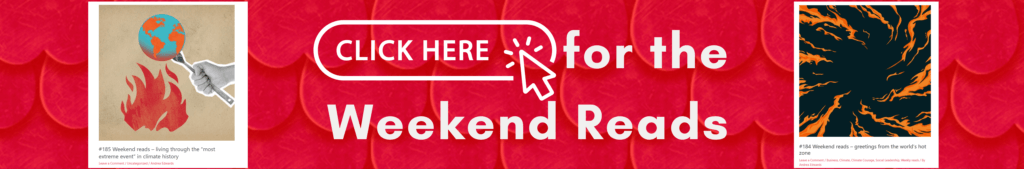 The world news page is updated daily, so check in whenever it suits you. It covers news and thought leadership across all issues relevant to the polycrisis, as well as some light stuff, because we can’t be serious all the time. To get to the news, click through on the image below, and a reminder, this goes back weeks, so have a scan and read/watch/listen to whatever jumps out at you.